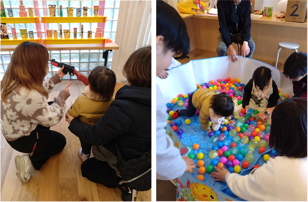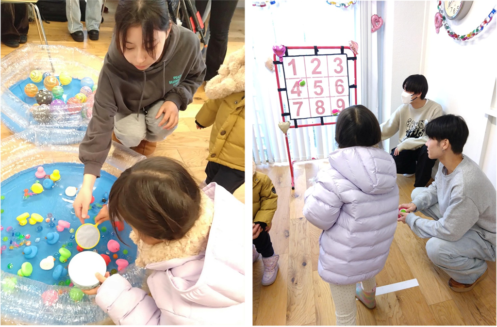 直近では、2025年12月14日(日)に開催されました。佐野ゼミは、子どもや親子連れなどを対象に、来場者全員が楽しめるような企画を考えました。縁日遊び、ストラックアウト、ボールプール、クリスマスツリー作り・ビンゴ大会と盛りだくさんな内容で好評でした。